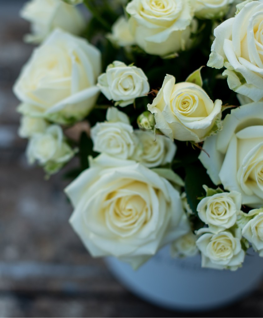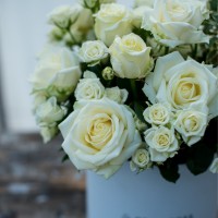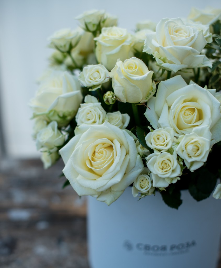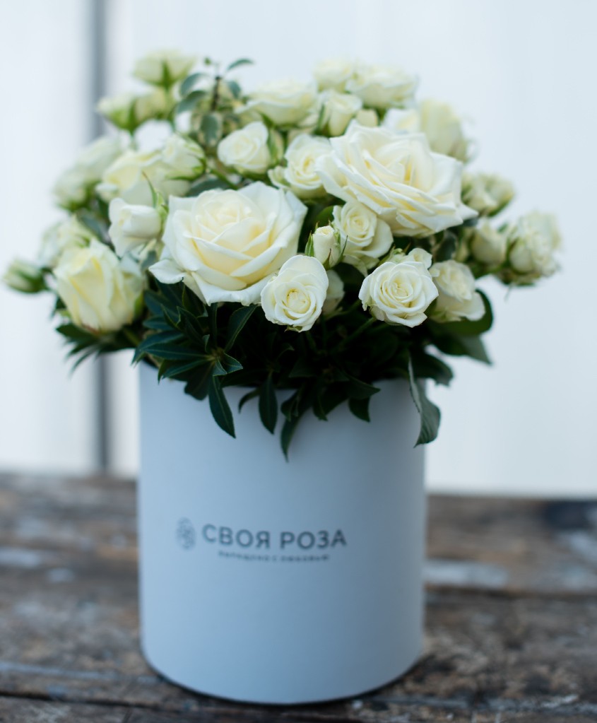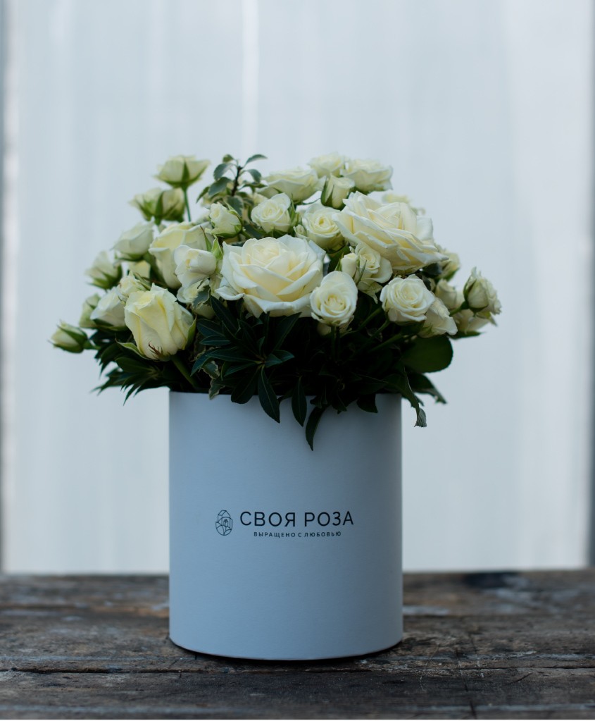 Композиция в шляпной коробке "Своя Роза" M
