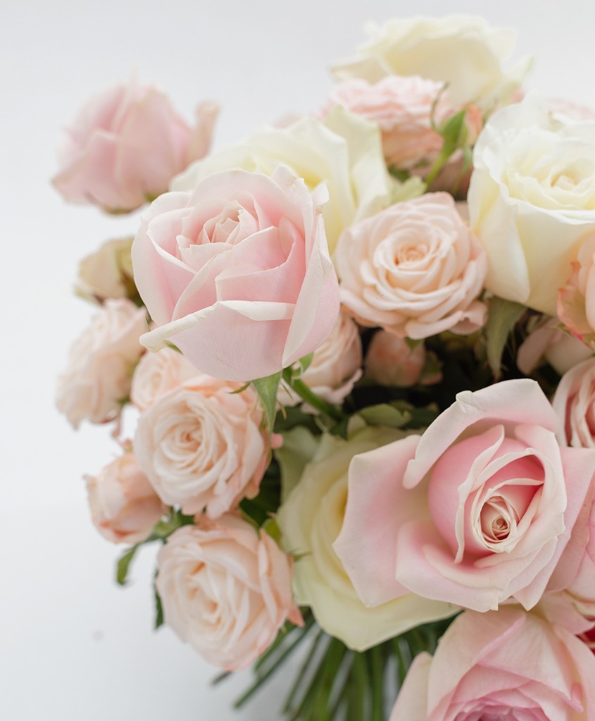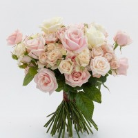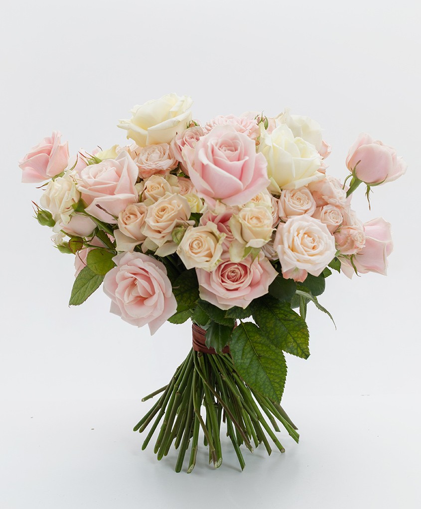 Сборный букет в нежно -розовой гамме из 4х форм роз:кустовых,пионовидных, кустовых пионовидных и одноголовых.